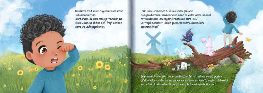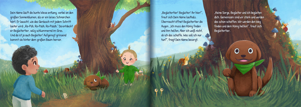Ein magisches Abenteuer "Die Traumreise deines Kindes" – ein personalisiertes Kinderbuch, das junge Leser in eine Welt voller Fantasie und Spaß entführt. Perfekt für Eltern, die nach einem einzigartigen und bereichernden Geschenk für ihre Kinder suchen. Zusammen mit oder ohne einem treuen Begleitkind und einem niedlichen Haustier wird Dein Kind (Baby, Kleinkind, Junior) zum Helden seiner eigenen Geschichte.